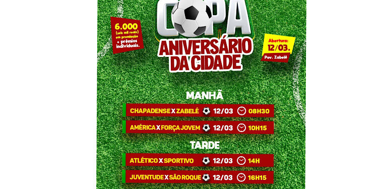 Inicia no próximo domingo, 12, a Copa Aniversário da Cidade, no povoado Zabelê, em Cristinápolis. O evento esportivo, que será realizado por meio da Secretaria Municipal de Esporte, Juventude, Lazer e Turismo, acontecerá em comemoração aos 141 anos de emancipação política do município.