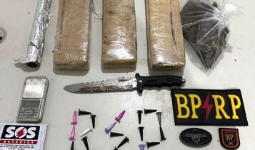 Diante do flagrante, foi feita a abordagem no suspeito. Foi encontrado na residência três tabletes e uma porção de maconha e 23 pinos de cocaína, além de uma uma balança de precisão e rolo de papel alumínio, material utilizado para tráfico de drogas.