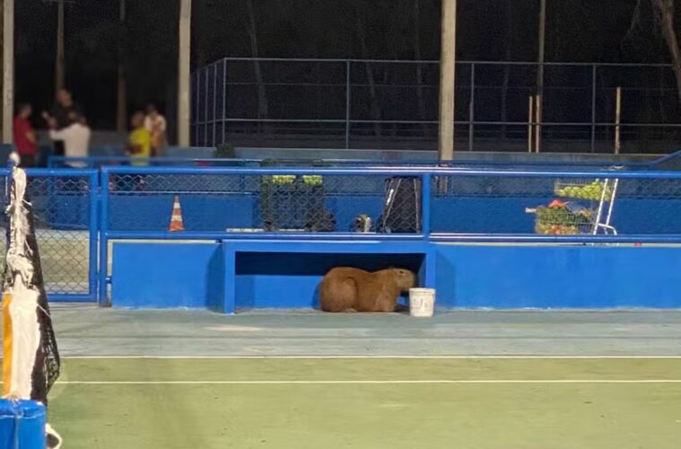 Uma capivara foi resgatada em uma quadra de tênis localizada na Orla da Atalaia em Aracaju, no início da noite desta terça-feira (5). A informação foi confirmada pela Polícia Ambiental.