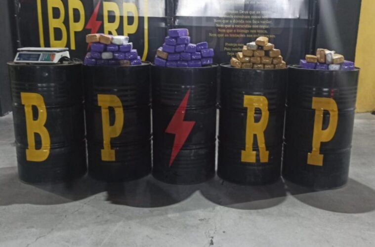 Na parte externa do imóvel, foram apreendidas várias caixas contendo 55 tabletes de maconha, totalizando 52,4 kg, além de uma balança, um facão, um rolo de papel filme e outros materiais utilizados no preparo e na comercialização da droga.